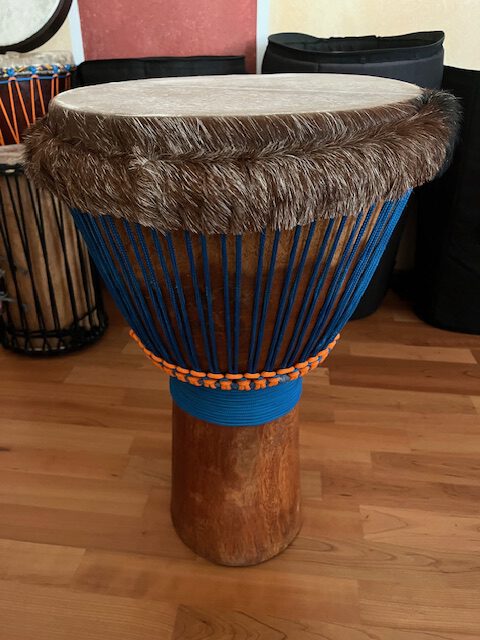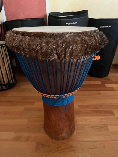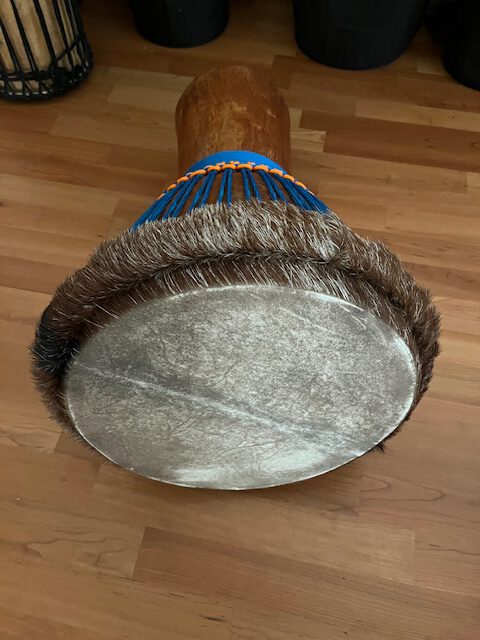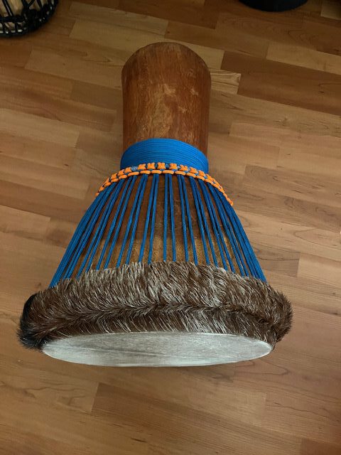 Rarität: Mit Rinderhaut neu bespannte Djembé